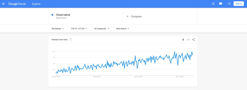 The above Google trend indicates a growing interest towards the concept Cloud native. However, what does it mean to really be Cloud native?